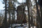Erstaunlich es waren echt einige Leute unterwegs, die wir zum größten Teil an uns haben vorbei ziehen lassen. WALD ERLEBEN, steht bei uns ganz vorne und nicht STRECKE MACHEN. Auch wir kamen dann irgendwann auf dem Rötzenberg an. Die markante Felsformation heißt Rötzenfels. Der war gesperrt aber nicht wie ich dachte durch die erhöhte Unfallgefahr sondern die Wanderfalken die dort brüten aber Vorrang. Bleibt also ruhig mal hinter dem Seil stehen und beweißt nicht, das ihr die Helden überhaupt seit.