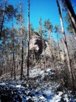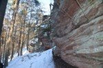 In Dimbach bei Hauenstein auf dem „Dimbacher Buntsand Höhenweg“, das war unsere heute Samstagstour, bei -5Grad und Sonnenschein und eisigen Winden auf den Höhen. Gefühlt waren es 15 km bei Minus 15 Grad.Vorab sei verraten, unter den Bedingungen war es schon eher eine härtere Tour, zumindest für uns.