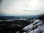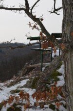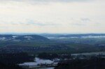 Tja, der denkt halt falsch. Es geht es noch weiter rauf zur Burgruine Hohenfels. Die ich mir für eine „irgendwann Wanderung“ aufgehoben habe. Man muß ja Ziele haben. Weiter zur Kronbuchen-Hütte. Der vordere Teil war unverschlossen und mit Plexiglasscheiben ausgestattet so hatten wir etwas Schutz vor dem kalten Wind aber Aussicht. Von dort kann man auch schöne weiter Touren laufen, z. B. zur Ruine Falkenstein. Die wir schon vor Jahren bewandert hatten. Wir verließen nun die Route „Blaues E auf gelben Grund“ und folgten dem blauen Punkt.