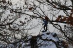 Dafür nicht ganz so früh am Tag ging es los. Dick eingepackt und die Backpacker-Stiefel an, waren gute Voraussetzungen, dass das ganze Spaß machen würde. Vom Parkplatz Richtung ging es los zur „Weisse Grube„, dort ist auch die Bergbau-Erlebniswelt beheimatet. Von dort geht es kleine Pfade durch den Wald. Vorbei an der roten Halde. Hinauf zur Löwensbergs-Ruhe. Dort gab es erst mal jede Menge Aussicht und bei schönen Wetter bestimmt auch gute Fernsicht und einen Schluck warmen Tee. Danach steigt es weiter an, hinauf zum Beutelberg, darauf eine Figur, die wohl als „Eiserner Mann“ angesprochen wird. Ich dachte dabei an den Trompeter von Seckingen. Wer weiss :-D.