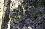 Ich habe Euch ja schon meinen wichtigsten Kult[platz] + Kraftort vorgestellt. Lange haben wir nach einem Platz gesucht, der von uns aus erreichbar ist. Ohne das wir mindestens eine Stunde fahren müssen. Wobei „gesucht“ nicht richtig ist, wir haben lange drauf gewartet ihn zu finden. Eines Tages bei einer dieser Touren, die wir eben nicht auf den Wegen bleiben sondern einfach so durch den Wald rennen, fanden wir ihn. Auffallend sind das an solchen Plätzen oft der Pflanzenwuchs anders ist. Das mag an den Verwerfungen liegen, aber vielleicht auch an der Energie die hier wirkt.